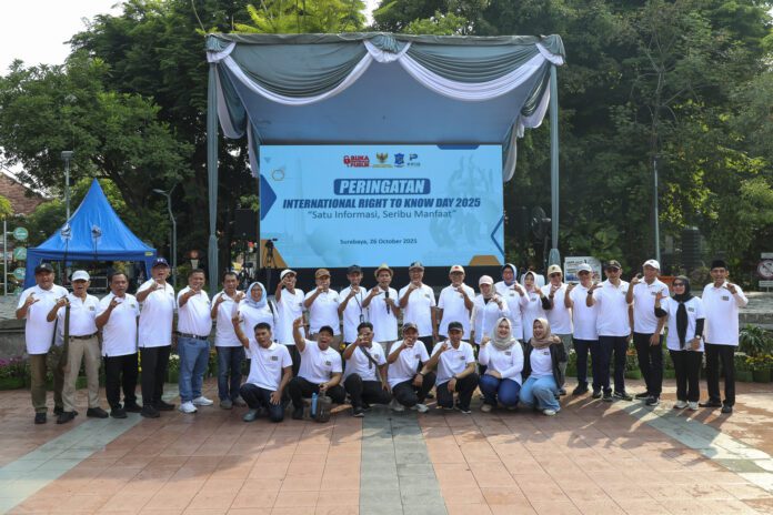 Surabaya 26 Oktober 2025 | Draft Rakyat Newsroom – Pemerintah Kota (Pemkot) Surabaya bersama Komisi Informasi (KI) Provinsi Jawa Timur (Jatim) menggelar Peringatan International Right to Know Day (RTKD) 2025 secara meriah di Car Free Day Taman Bungkul, Minggu (26/10/2025). Mengusung tema “Satu Informasi, Seribu Manfaat,” acara ini menjadi seruan bagi masyarakat untuk memantik literasi informasi publik, sekaligus mengingatkan pentingnya hak atas informasi yang benar, terbuka, dan dapat dipercaya.