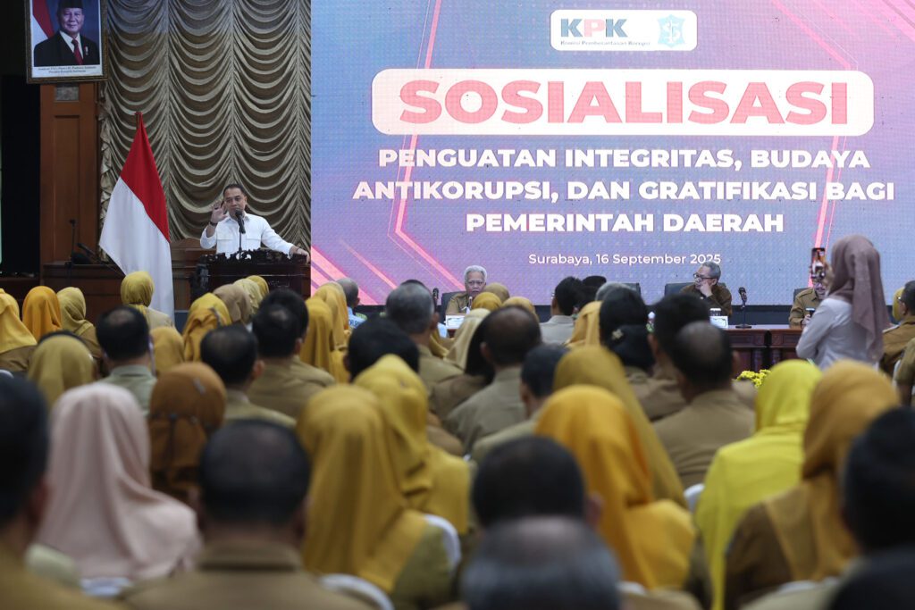 Surabaya 16 September 2025 | Draft Rakyat Newsroom – Pemerintah Kota (Pemkot) Surabaya bekerjasama dengan Komisi Pemberantasan Korupsi (KPK) kembali mengadakan sosialisasi penguatan integritas, budaya antikorupsi, dan gratifikasi di Graha Sawunggaling pada Selasa (16/9/2025).