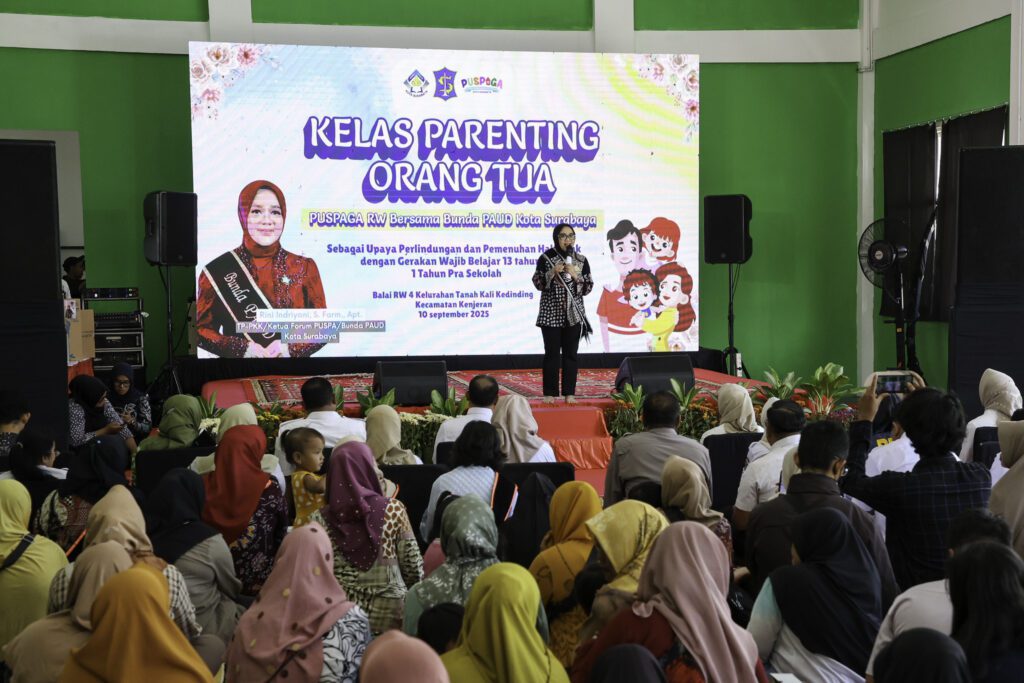 Surabaya 10 September 2025 | Draft Rakyat Newsroom – Pemerintah Kota (Pemkot) Surabaya terus memperkuat komitmennya dalam pendidikan anak usia dini. Melalui Kelas Parenting Orang Tua Pusat Pembelajaran Keluarga (Puspaga) RW, di Balai RW 4, Kelurahan Tanah Kali Kedinding, Kecamatan Kenjeran, Pemkot Surabaya mengkampanyekan Gerakan Wajib Belajar 13 Tahun yang mencakup satu tahun pra-sekolah, Rabu (10/9/2025).