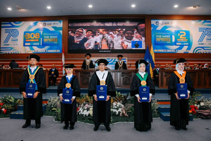 Surabaya 18 Desember 2024 | Draft Rakyat Newsroom – Universitas Airlangga (UNAIR) kembali mengadakan pengukuhan Guru Besar pada Selasa (17/12/2024). Acara pengukuhan berlangsung di di Aula Graha Mukti, Kampus MERR-C, UNAIR. Kali ini UNAIR mengukuhkan lima Guru Besar, yaitu Prof Helmy Yusuf SSi Apt MSc PhD, Prof Dr Nur Chamidah SSi MSi, Prof Dr Sarkawi SS MHum, Prof Dr Arifa Mustika dr MSi, dan Prof Dr Tuti Budirahayu Dra MSi.