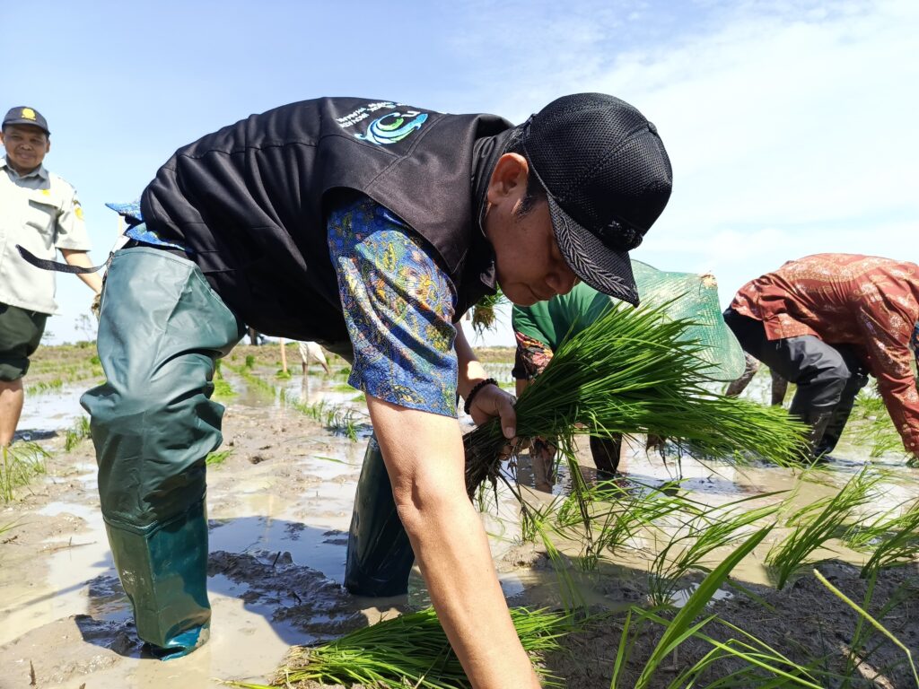 “Tahun ini oleh Pak Menteri di target lagi ditambah lagi 233 ribu hektar, padahal sawahnya kita hanya 95 ribu. Bismillah jangan khawatir pemerintah terus menjaga pupuk, menjaga harga, semoga tahun ini lebih baik lagi. Monggo yang belum tanam segera dipercepat tidak perlu menunggu tanamnya selesai pokok langsung,” imbuhnya.