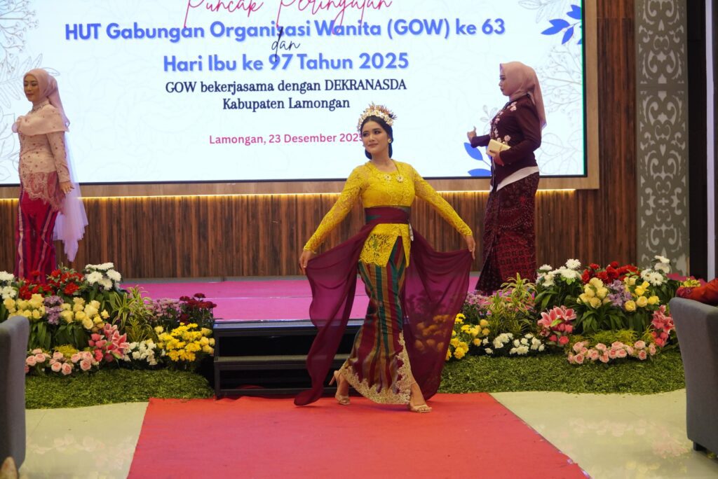 Surabaya 23 Desember 2025 | Draft Rakyat Newsroom – Gabungan Organisasi Wanita (GOW) Kabupaten Lamongan bekerjasama dengan Dewan Kerajinan Nasional Daerah (Dekranasda) Kabupaten Lamongan gelar peringatan Hari Ibu ke 97, dengan tajuk estetika fashion show, Selasa (23/12) di Aula Gadjah Mada Gedung Pemkab Lt.7.