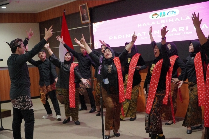 Surabaya 26 April 2025 | Draft Rakyat Newsroom – Dharma Wanita Persatuan (DWP) Dinas Komunikasi dan Informatika Provinsi Jawa Timur (Diskominfo Jatim) mengadakan Halalbihalal dan Peringatan Hari Kartini bertajuk ‘Meneladani Semangat Kartini, Menyatukan Hati di Bulan Suci’, Jumat (25/4/2025). Acara yang berlangsung di Lt.4, Ruang Anjasmoro, Kantor Dinas Kominfo Jatim, Surabaya itu, diisi dengan lomba paduan suara dan lomba stand up comedy antar bidang.