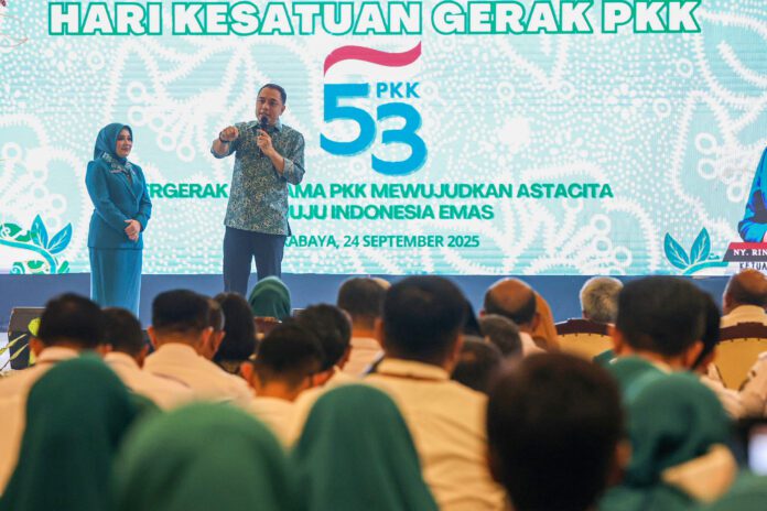 Surabaya 24 September 2025 | Draft Rakyat Newsroom – Peringatan Hari Kesatuan Gerak (HKG) ke-53 PKK Tahun 2025 di Kota Surabaya berlangsung khidmat pada Rabu (24/9/2025). Acara yang mengusung tema “Bergerak Bersama PKK Mewujudkan Asta Cita Menuju Indonesia Emas”, itu dipusatkan di Graha YKP, Jalan Medokan Asri Utara No. 39, Surabaya.