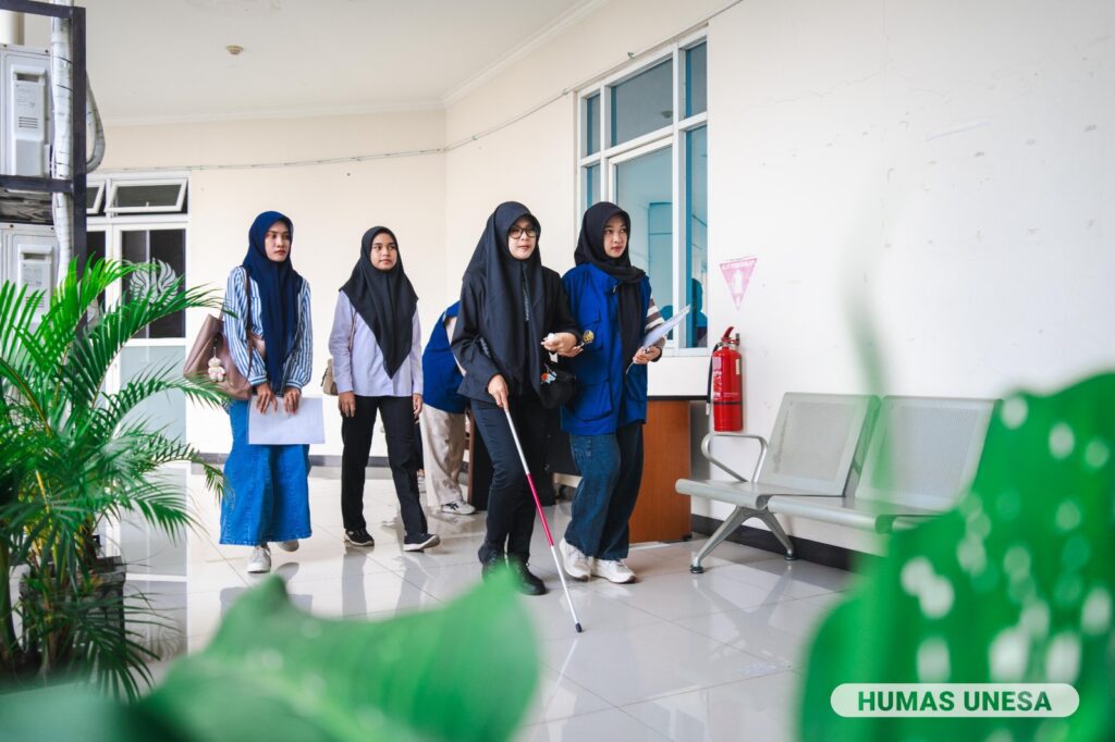 Dosen Unesa kelahiran Ngawi itu melanjutkan, setiap peserta disabilitas didampingi pendamping, yang bertugas mendampingi peserta mulai dari pintu kedatangan lobi rektorat sampai di ruangan tesnya masing-masing.
