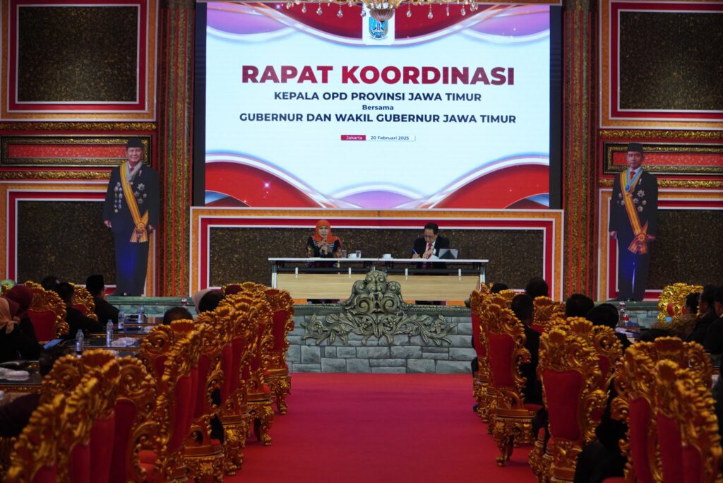 Surabaya 21 Februari 2025 | Draft Rakyat Newsroom – Gubernur Jawa Timur, Khofifah Indar Parawansa dan Wakil Gubernur, Emil Elestianto Dardak langsung bergerak cepat usai dilantik dengan menggelar rapat koordinasi Kepala Perangkat Daerah (PD) Provinsi Jawa Timur di Kraton Majapahit Jakarta, Kamis (20/2/2025) guna memperkuat sinergi dan merumuskan langkah strategis pembangunan.