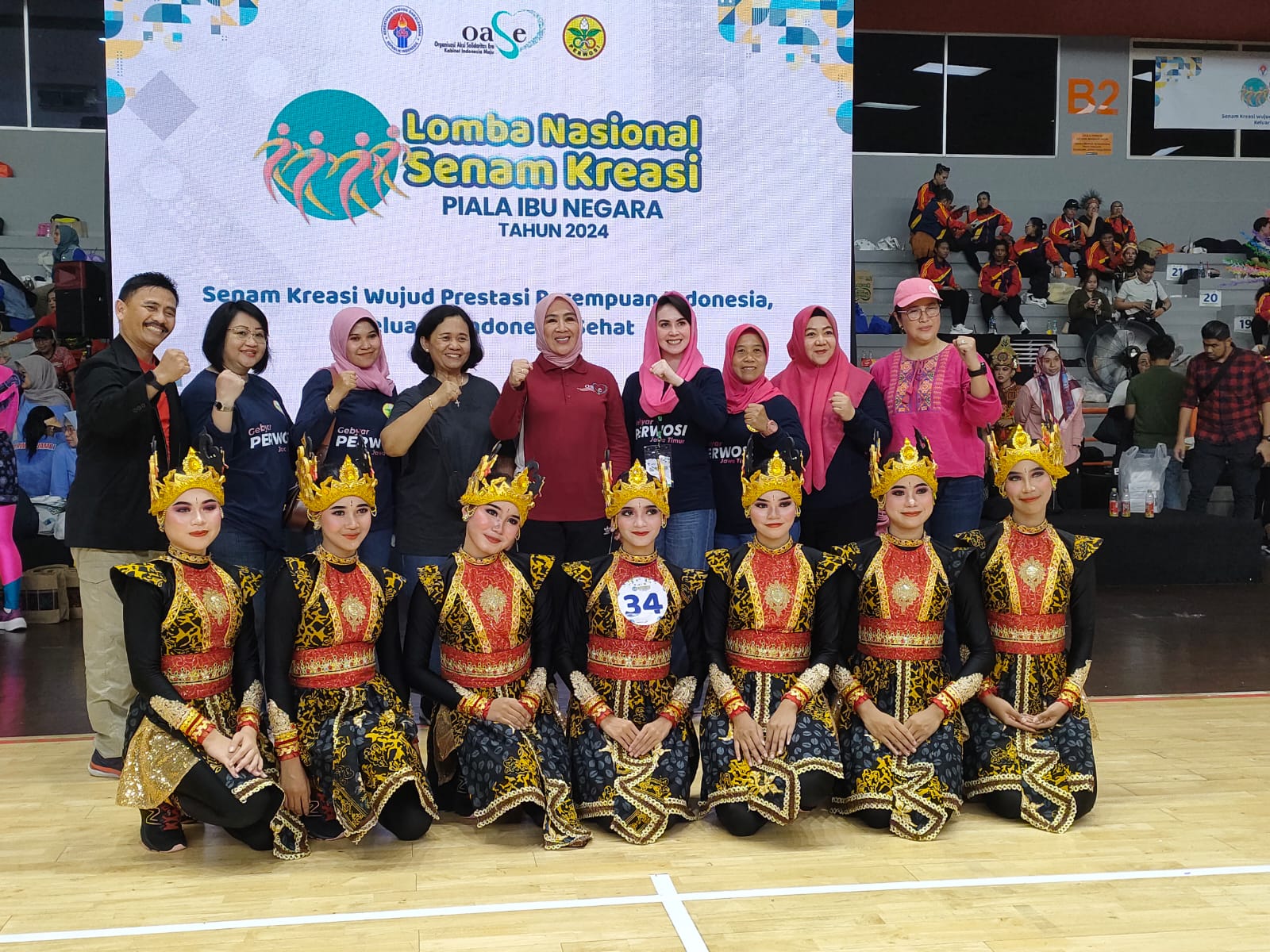 Surabaya 18 Juli 2024 | Draft Rakyat Newsroom– Pada kejuaraan Lomba Senam Kreasi tingkat Nasional Piala Ibu Negara tahun 2024, Persatuan Wanita Olahraga Seluruh Indonesia (Perwosi) Jawa Timur meraih Juara Harapan Pertama setelah bersaing dengan 46 peserta dari seluruh provinsi di Indonesia. Organisasi yang dipimpin Arumi Bahcsin Emil Dardak itu meraih juara harapan pertama berdasarkan kriteria penjurian seputar kreativitas, kekompakan, keserasian gerak, serta kostum yang ditampilkan.