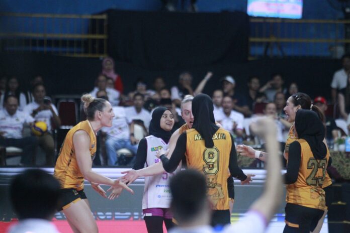 Surabaya 20 April 2025 | Draft Rakyat Newsroom – Tim putri Jakarta Popsivo Polwan memperbesar peluang ke grand final kompetisi bola voli PLN Mobile Proliga 2025 setelah mengalahkan Jakarta Electric PLN dengan skor 3-2 (25-23, 20-25, 19-25, 25-17, 15-13) pada babak final four putaran pertama di GOR Jayabaya, Kota Kediri, Jawa Timur, Minggu (20/4/2025).