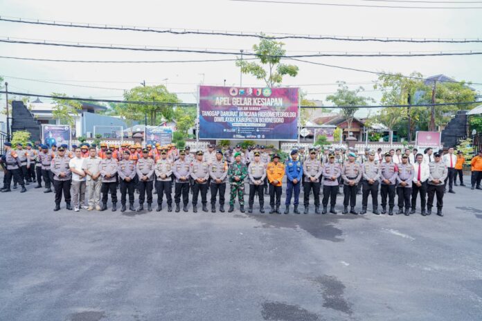 Surabaya 5 Nopember 2025 | Draft Rakyat Newsroom – Mengantisipasi potensi bencana hidrometeorologi di wilayah Jawa Timur, Polres Bojonegoro menggelar apel siaga di halaman Mapolres Bojonegoro, Rabu (5/11/2025).