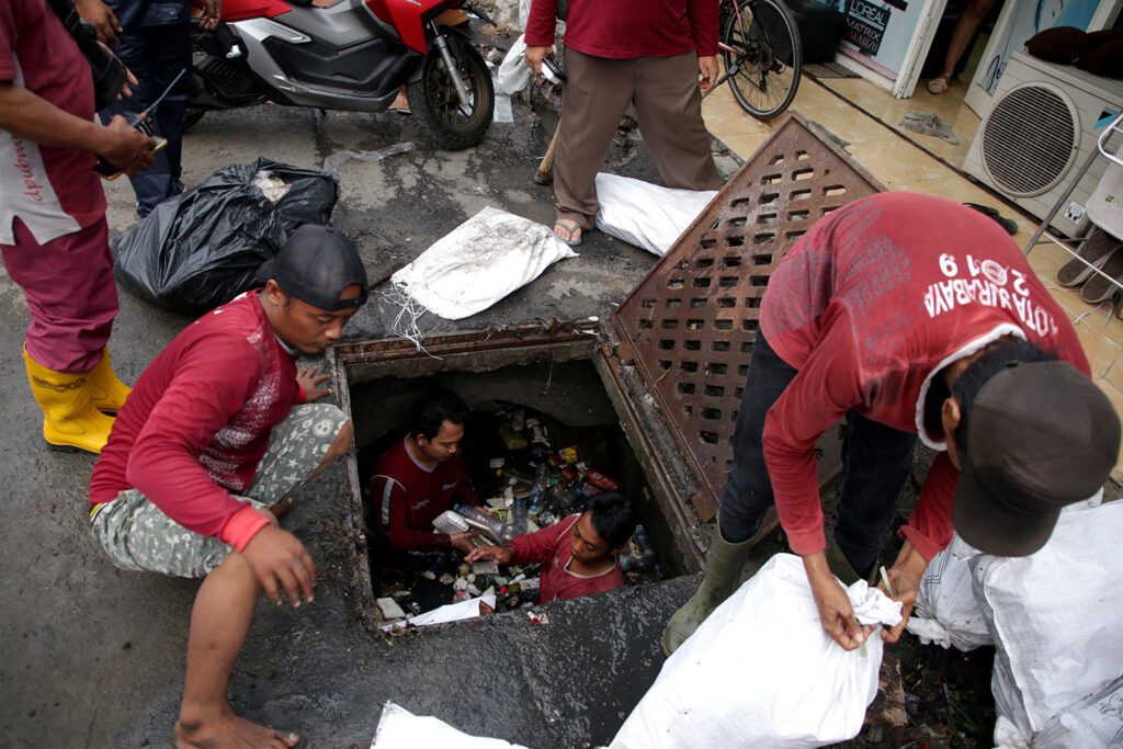 “Ada sisa kulit dari pembungkus kabel utilitas yang habis dipotong-potong dan menyumbat jalannya air menuju ke Rumah Pompa Jalan Kenari. Sehingga, wilayah Jalan Embong Malang, dan Jalan Kedungdoro bagian utara ada beberapa titik genangan,” kata Windo, Sabtu (30/11/2024).