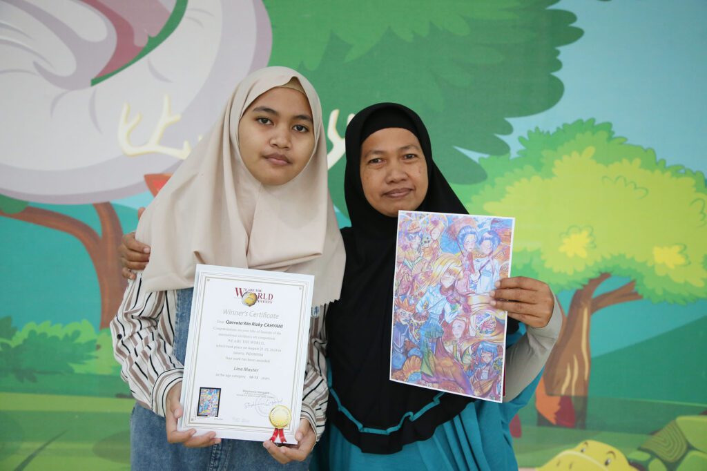 Salah satunya adalah Qurrota’Ain Rizky Cahyani yang baru-baru ini berhasil meraih best Line Master kategori usia 10-13 tahun dalam ajang We Are The World Event yang digelar pada 21 hingga 25 Agustus 2024 di Jakarta. Event tersebut diadakan oleh pusat seni yang berasal dari Paris.