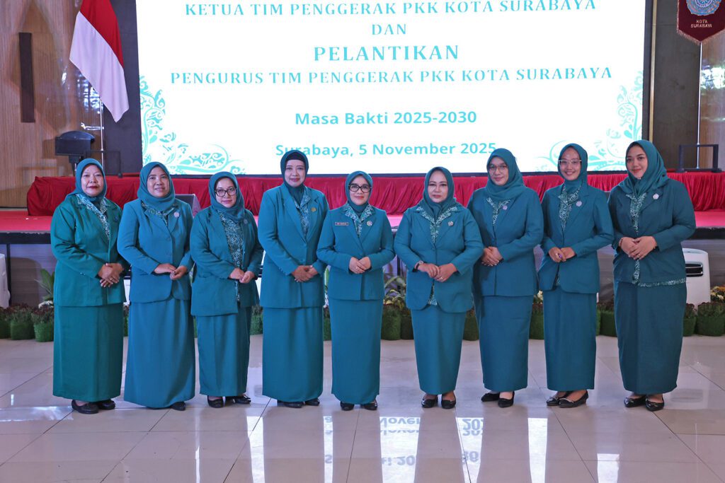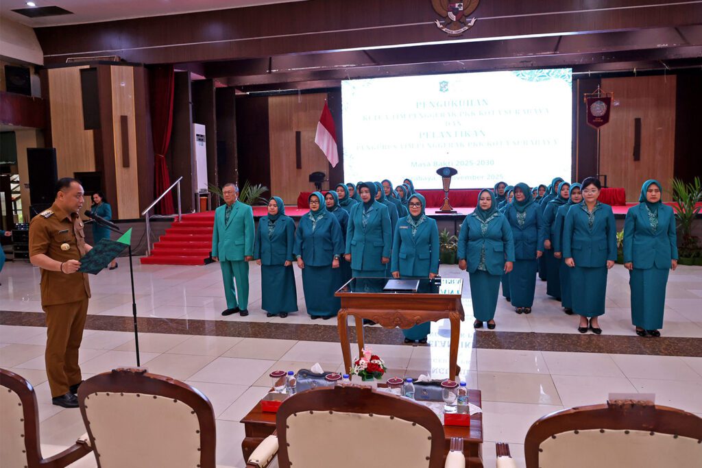 Surabaya 5 Nopember 2025 | Draft Rakyat Newsroom – Wali Kota Surabaya, Eri Cahyadi, secara resmi mengukuhkan Rini Indriyani sebagai Ketua Tim Penggerak (TP) PKK Kota Surabaya beserta seluruh jajaran pengurus masa bakti 2025–2030, di Gedung Wanita Candra Kencana, Rabu (5/11/2025). Pengukuhan ini bukan sekadar seremonial, melainkan awal dari gerakan masif yang akan mengubah kebiasaan warga hingga potensi dan masa depan remaja.