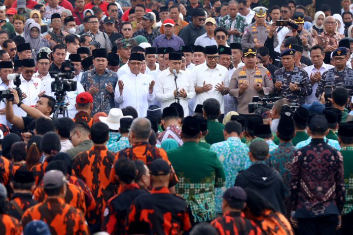 Surabaya 4 September 2025 | Draft Rakyat Newsroom – Sebanyak 9.299 warga Kota Surabaya berkumpul di Halaman Tugu Pahlawan untuk mengucapkan ikrar “Jogo Suroboyo, Jogo Indonesia” pada Kamis (4/9/2025). Acara yang diinisiasi oleh berbagai elemen masyarakat ini merupakan respons terhadap tindakan anarkistis yang sempat mengganggu keamanan dan perekonomian kota.
