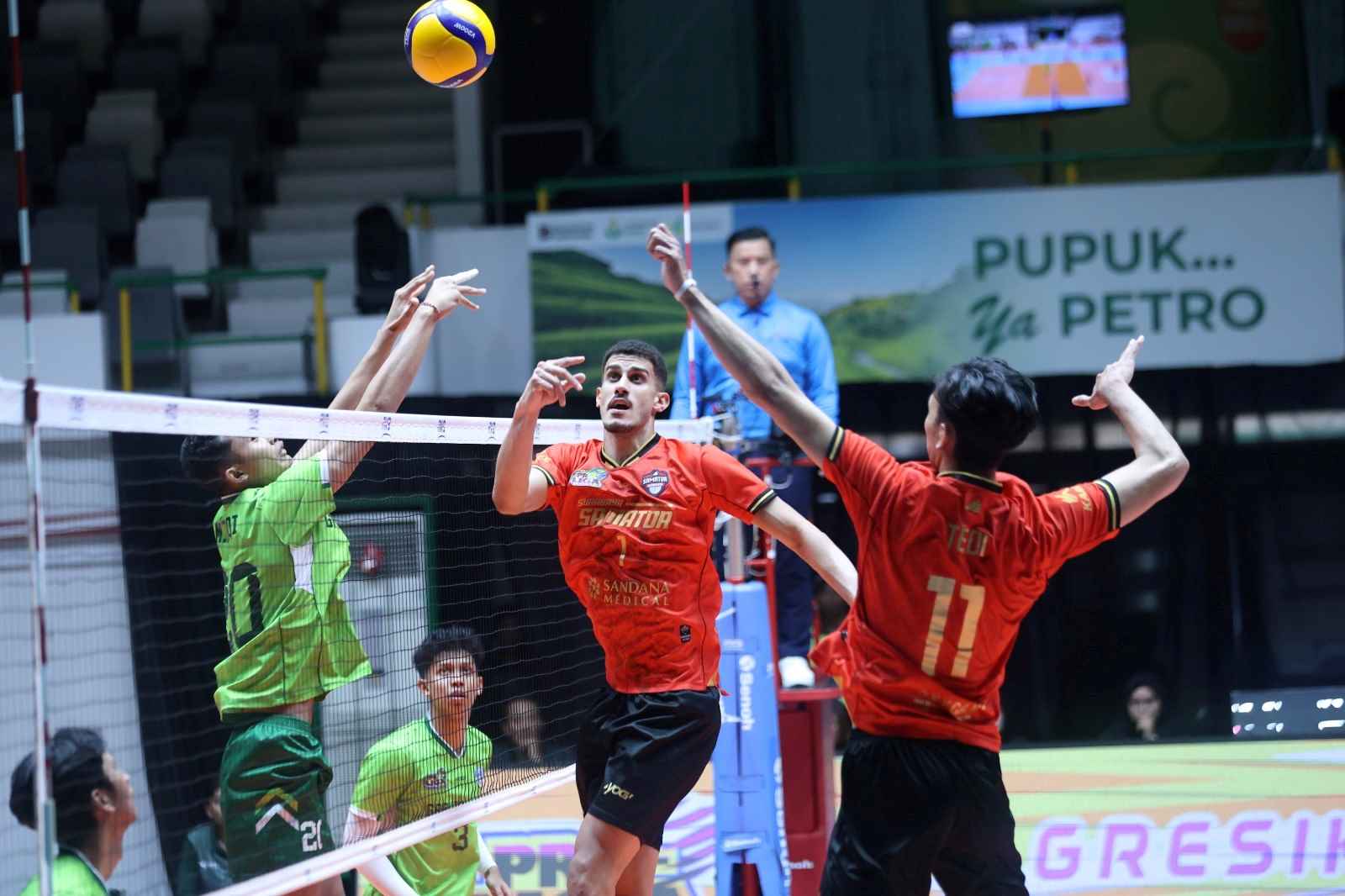 meraih poin penuh usai mengandaskan Jakarta Garuda Jaya dengan skor telak 3-0 (25-17, 25-19, 25-22), pada laga pembuka seri keempat putaran pertama di GOR Tri Dharma Petrokimia Gresik, Kamis (29/1/2026).