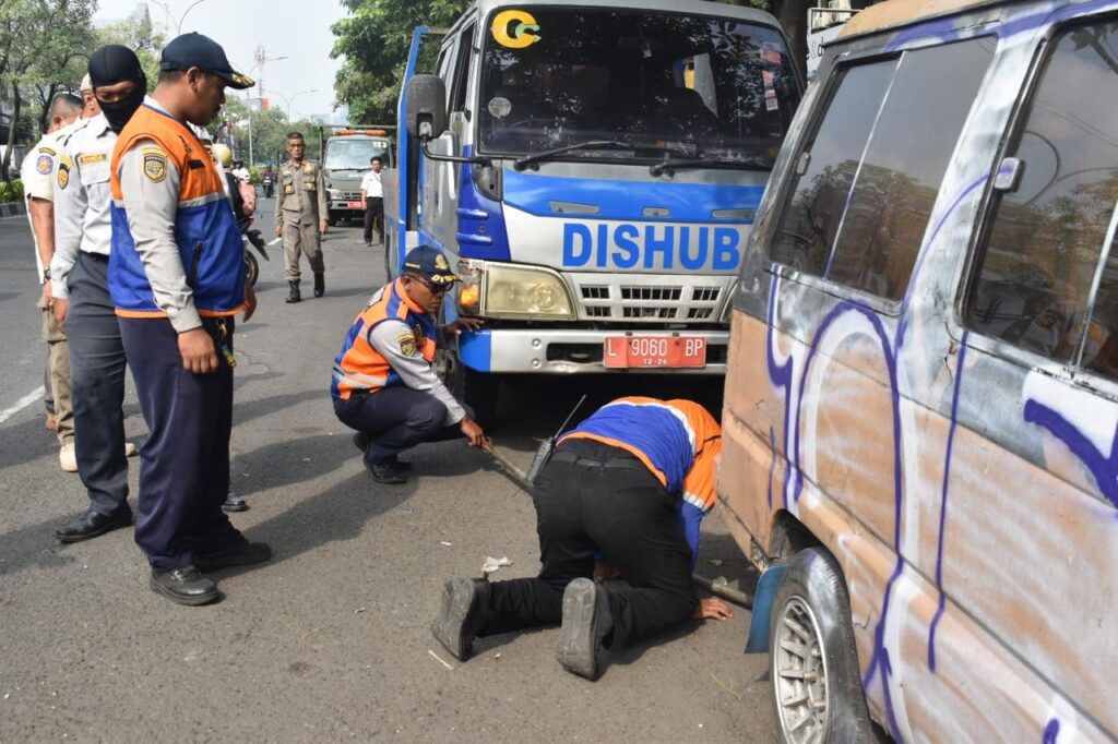 Selain itu, Dinas Perhubungan (Dishub) Surabaya juga melakukan penderekan terhadap satu mobil usaha variasi yang masih terparkir di bahu jalan.