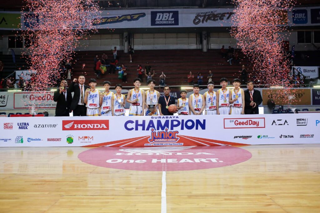 Surabaya 26 Oktober 2025 | Draft Rakyat Newsroom – Kompetisi basket pelajar tingkat SMP terbesar Junior Exhibition Games 2025 Surabaya resmi berakhir Jumat, 24 Oktober 2025. Ajang yang menjadi rangkaian Honda DBL with Kopi Good Day 2025 East Java–North (DBL Surabaya) itu telah mendapatkan juaranya. Surabaya Cambridge School (SCS) keluar sebagai juara basket putra. Sementara SMP Petra 1 menjadi juara di basket putri.