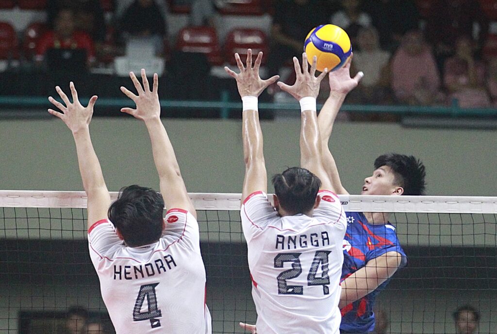 Surabaya 25 Agustus 2024 | Draft Rakyat Newsroom-Timnas putra Indonesia kembali memetik kemenangan pada laga kedua Kejuaraan Bolavoli Putra SEA V League, usai menang tipis 3-2 (25-22, 28-30, 22-25, 25-16, 15-13) atas Vietnam di GOR UNY, Yogyakarta, Sabtu (24/8/2024).