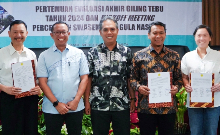 Hadir dalam Evaluasi Akhir Giling Tebu Tahun 2024 dan Kick Off Meeting Percepatan Swasembada Gula Nasional tersebut perwakilan industri gula BUMN dan swasta di Indonesia dan diakhiri dengan penandatangani komitmen bersama oleh masing-masing perusahaan gula BUMN dan swasta yang hadir.