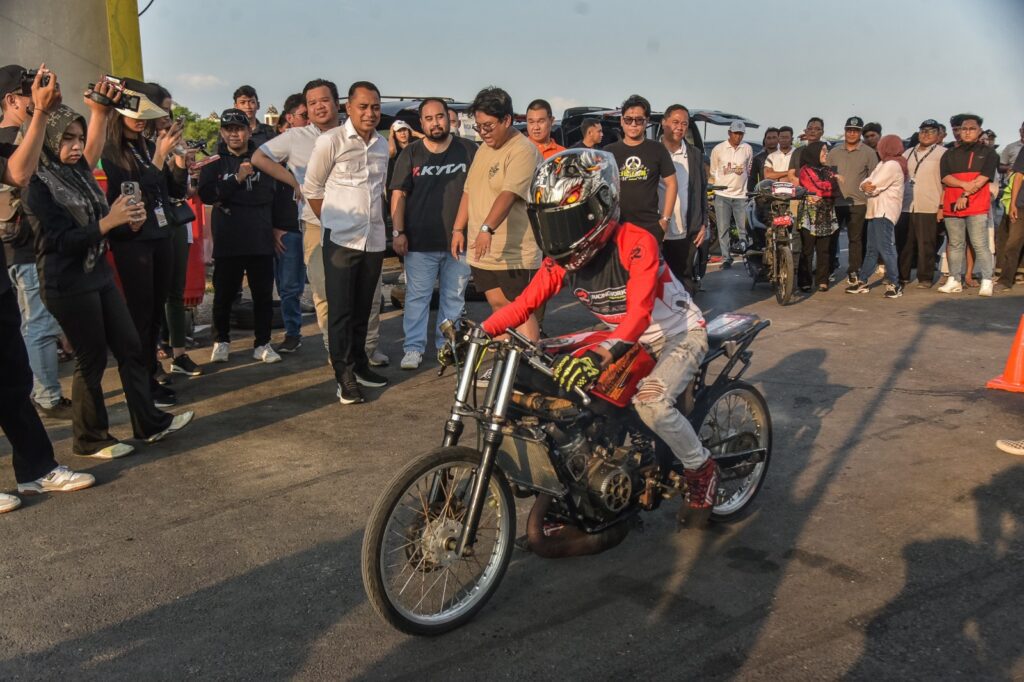 Surabaya 22 September 2024 | Draft Rakyat Newsroom-Pemerintah Kota (Pemkot) Surabaya bersama Amari Auto Group menggelar latihan drag motor bareng di Sirkuit Gelora Bung Tomo (GBT), Sabtu, (21/9/2024). Latihan drag motor bareng ini, bertujuan untuk mewadahi pecinta motor balap, khususnya balapan kategori drag.