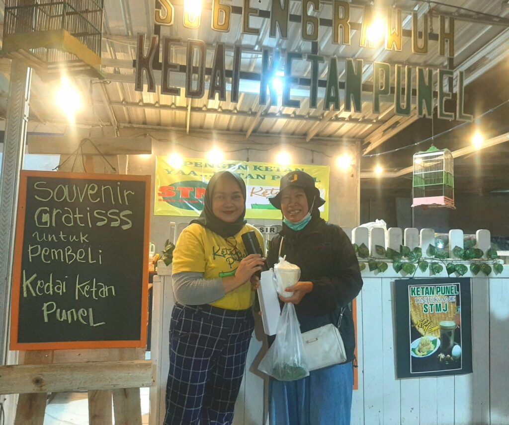 Hal senada disampaikan oleh pembeli lainnya Wiwit Widyawati, warga perumahan Grand Royal Desa Wage. Ibu yang juga kader Posyandu Desa Wage tersebut datang ke Kedai Ketan Punel bersama teman-temannya. “Betul betul tidak menyangka, pas kami makan makan, kemudian kami diinfo oleh pemilik kedai ketan punel kalau dapat souvenir gratis dari KPU.