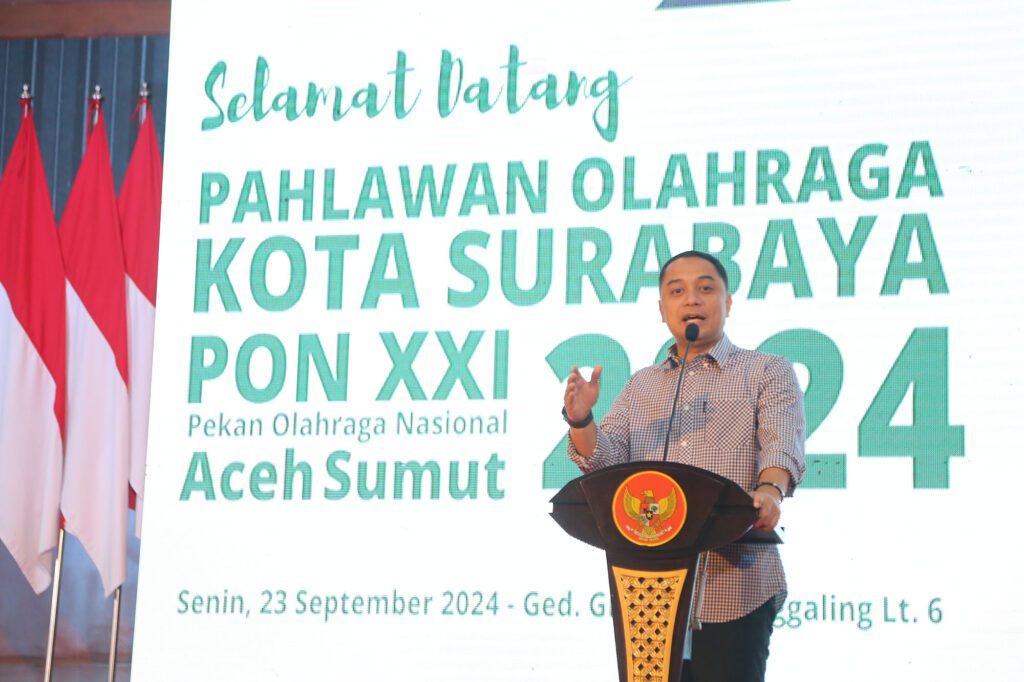 Wali Kota Eri Cahyadi menyampaikan apresiasi dan penghargaan setinggi-tingginya kepada para atlet yang berhasil membawa Jawa Timur meraih medali di PON Aceh-Sumut 2024. Sebab, dari total 146 medali emas yang diraih Jawa Timur, 71 di antaranya disumbangkan atlet Surabaya.