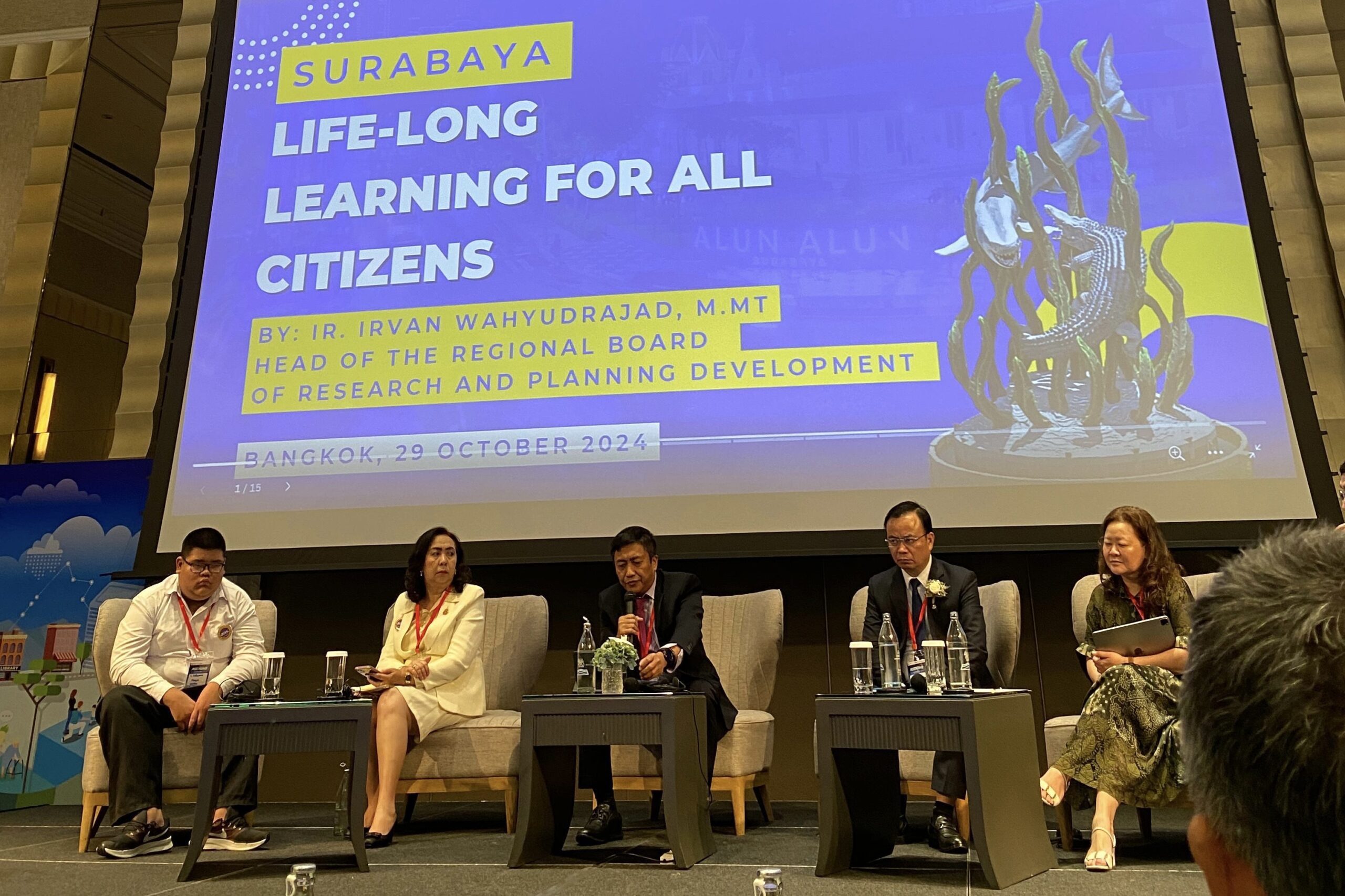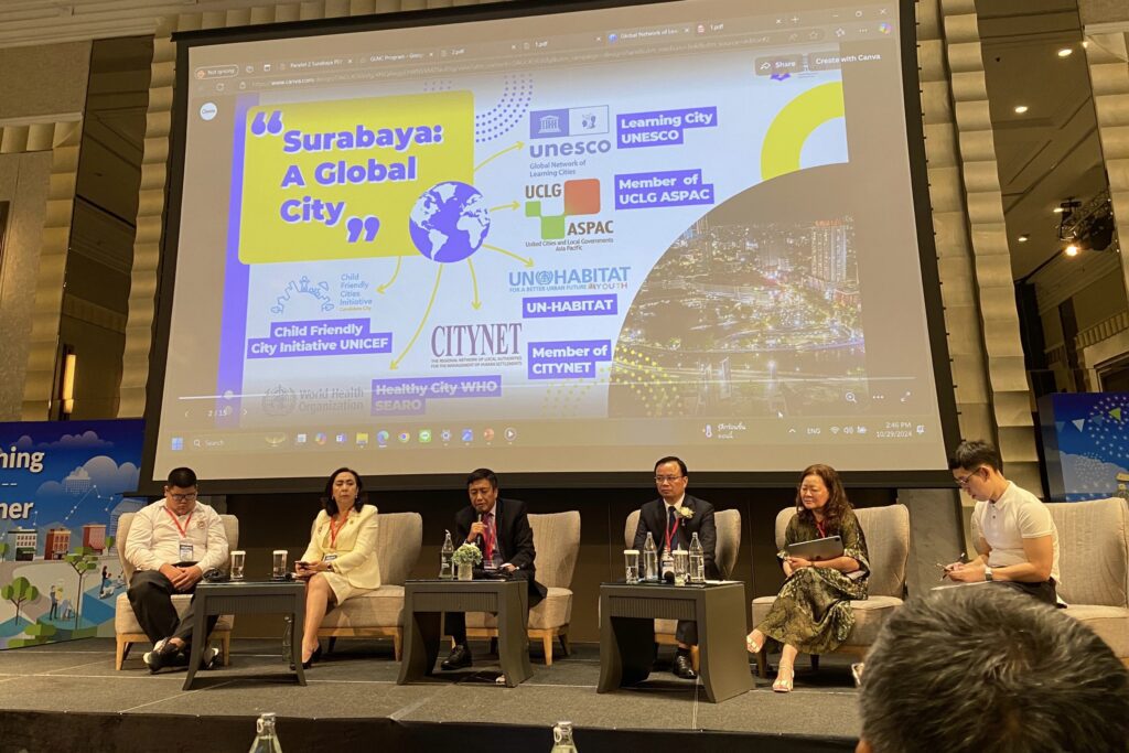 Surabaya 31 Oktober 2024 | Draft Rakyat Newsroom – Surabaya menjadi satu-satunya kota di Indonesia yang mengikuti ajang ASEAN+3 Regional Learning Cities Conference, pada 29-30 Oktober 2024 di Bangkok, Thailand. Di ajang ini, Surabaya diberi kesempatan untuk memberikan pemaparan tentang strategi pembangunan Surabaya Inclusive Lifelong Education City.