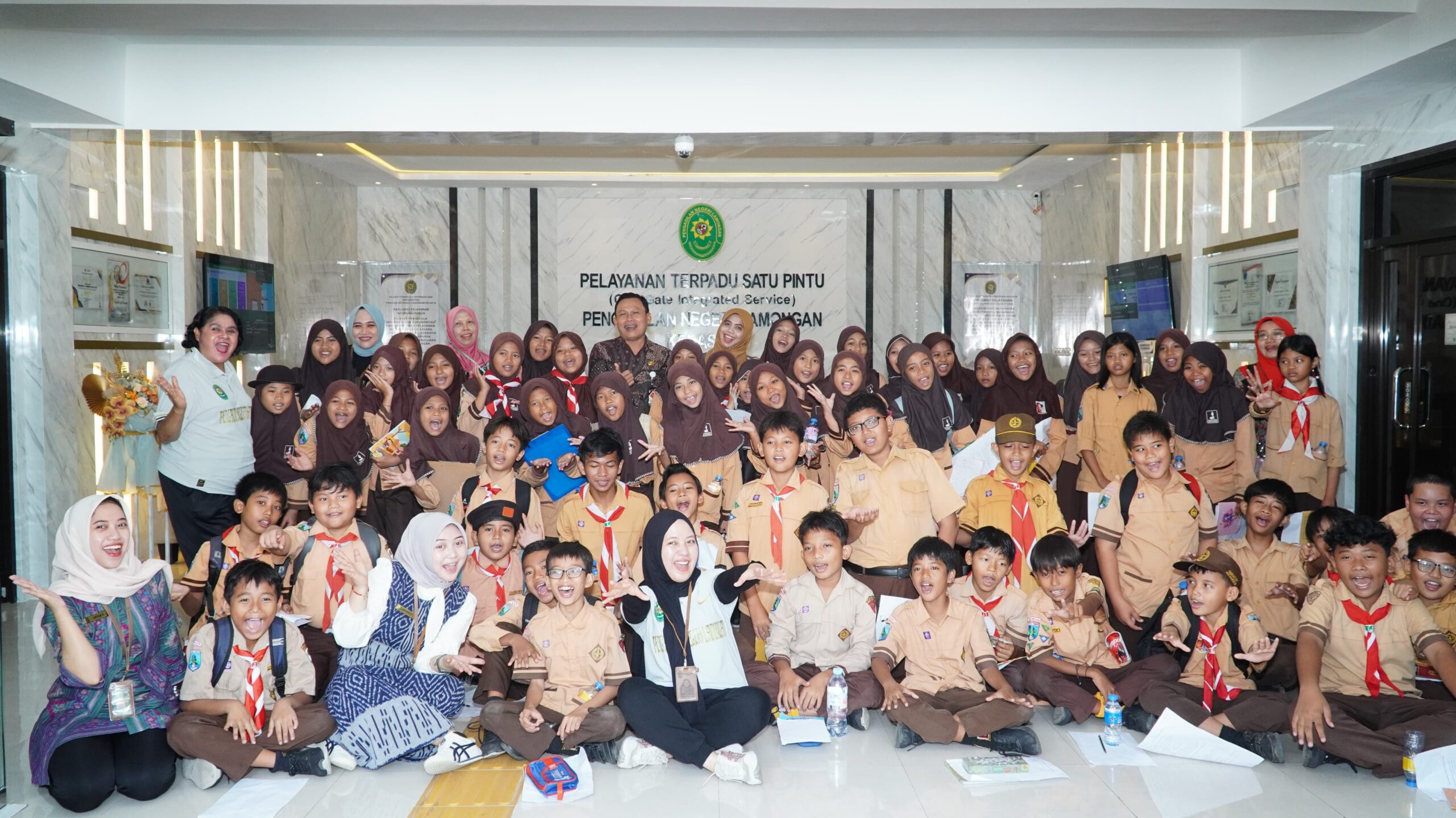 “Hari ini ada wisata edukasi yang kami gelar bersama 62 siswa (Kelas V dan VI) dari SD Negeri Kepatihan. Tujuannya adalah memperkenalkan proses hukum mulai layanan, tugas pokok, fungsi, juga menyerukan anak agar terus berakhlak mulia sehingga terhindar dari pelanggaran hukum,” tutur Ali Sobirin saat memberikan arahan pada wisata edukasi bersama SD Negeri Kepatihan, Jumat (3/10) di Kantor Pengadilan Negeri Lamongan.