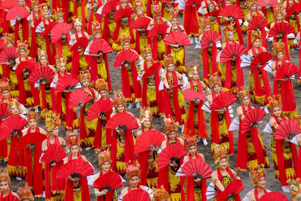 Surabaya 26 Oktober 2025 | Draft Rakyat Newsroom –  Memasuki tahun ke-13, pagelaran kolosal Gandrung Sewu kian memukau. Menghadirkan 1.400 penari dengan tema “Selendang Sang Gandrung”, penampilan ribuan penari dengan koreografi gerakan yang anggun dan harmonis memukau ribuan penonton yang memadati Pantai Marina Boom, Sabtu (25/10/2025).