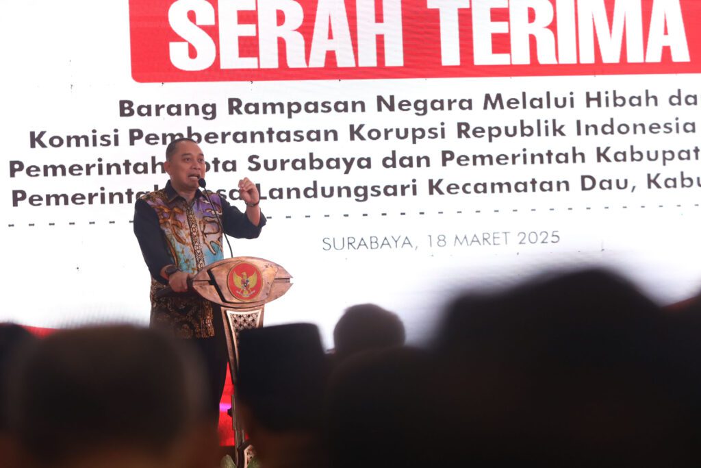 Surabaya 18 Maret 2025 | Draft Rakyat Newsroom – Pemerintah Kota (Pemkot) Surabaya menerima barang rampasan negara dari Komisi Pemberantasan Korupsi (KPK) melalui mekanisme hibah dengan total nilai Rp11.756.311.000. Acara serah terima aset tersebut berlangsung di Lobi Lantai 2 Balai Kota Surabaya, Selasa (18/3/2025).