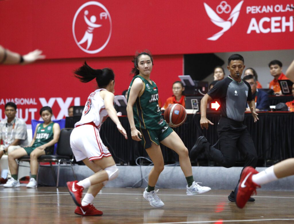Surabaya 2 September 2024 | Draft Rakyat Newsroom-Tim basket putri Jawa Timur (Jatim) mengawali fase grup PON XXI Aceh-Sumatera Utara dengan hasil positif. Mereka menaklukkan salah satu tim unggulan DKI Jakarta 73-54 di GOR Harapan Bangsa, Banda Aceh, Senin (2/9/24).