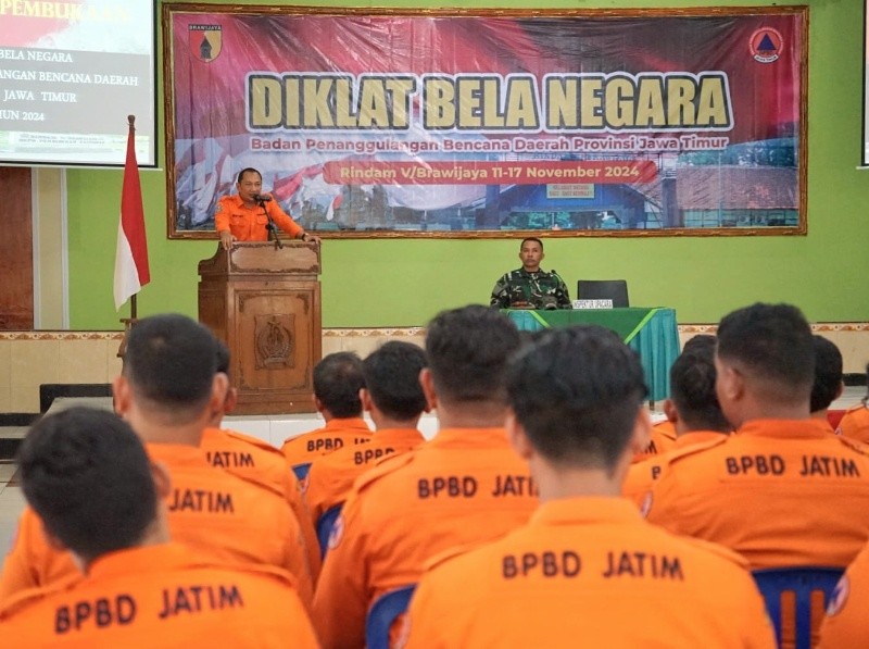 Pembukaan Diklat Bela Negara tahap I ini dipimpin Kalaksa BPBD Jatim Gatot Soebroto dan Wadan Dodikjur Rindam V/Brawijaya, Mayor CBA Yoyok Indriyono.