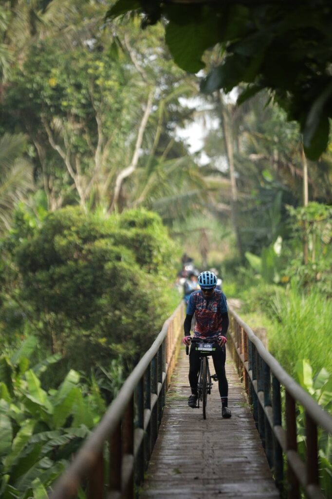 Event ini juga diikuti cyclist asal Italia, Davide Veechi, yang sudah menetap di Malang selama 33 tahun. Ia mengaku penasaran mencoba Malang Century Journey 2025 karena rutenya, terutama spot yang menjadi pembicaraan peserta: segmen Indiana Jones. Selama ini Veechi lebih sering bersepeda di jalur arteri dan jarang mengeksplorasi rute pedesaan seperti yang disajikan di event ini. “Karena event ini tidak ada race-nya, jadi kita manfaatkan untuk menikmati pemandangan, foto-foto, dan kulineran,” katanya.