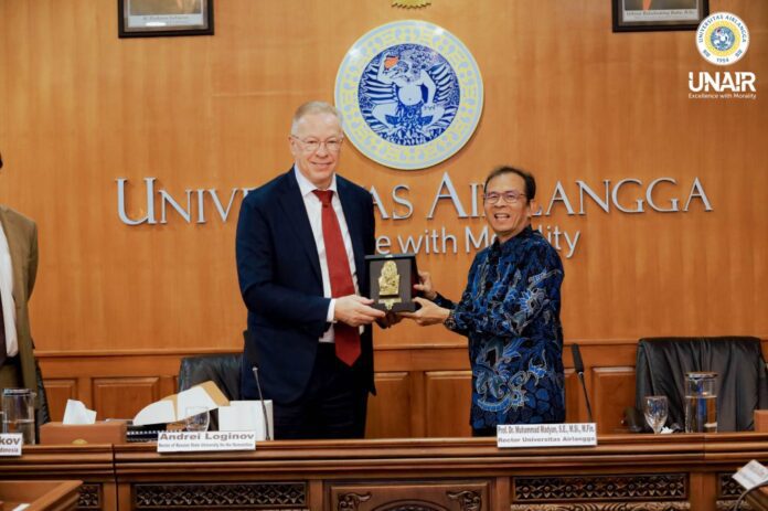 Sementara itu, Rektor RSUH Prof Andrei Loginov menyoroti hubungan yang kian erat antara Rusia dan Indonesia serta potensi kolaborasi dalam riset maritim dan humaniora. Ia juga memaparkan sejarah RSUH sebagai universitas humaniora terkemuka di Moskow dengan ratusan program akademik. “Kami ingin memperdalam kerja sama riset dan membuka kesempatan bagi mahasiswa UNAIR untuk belajar bahasa Rusia di kampus kami,” tutur Prof Loginov.