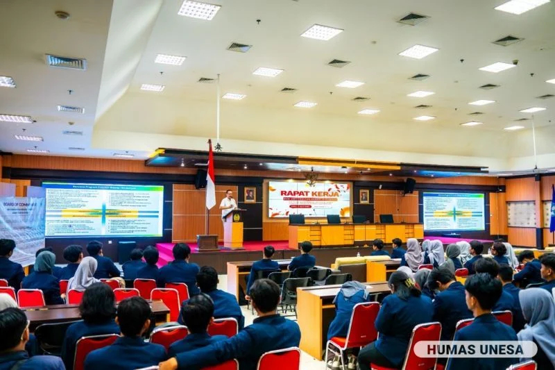 Surabaya 9 April 2026 | Draft Rakyat Newsroom – Badan Eksekutif Mahasiswa (BEM) Universitas Negeri Surabaya (Unesa) merumuskan langkah strategis organisasi melalui Rapat Kerja (Raker) yang digelar di Auditorium Lantai 11 Gedung Rektorat, Kampus 2 Lidah Wetan, pada Rabu, 8 April 2026. Mengusung tajuk “Gae Raker: Gerak Bareng, Bersinergi dalam Gagasan, Bergerak dalam Kebersamaan”, agenda ini menjadi titik awal bagi mahasiswa untuk berkontribusi nyata bagi almamater.