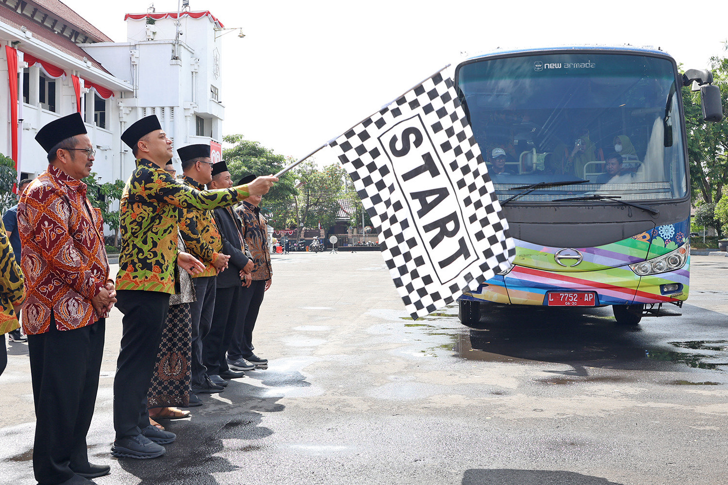 Surabaya 11 September 2025 | Draft Rakyat Newsroom – Wali Kota Surabaya Eri Cahyadi secara langsung memberangkatkan 56 kafilah Musabaqoh Tilawatil Qur’an (MTQ) XXXI Kota Surabaya yang akan berlaga di tingkat Provinsi Jawa Timur. Sebelum pelepasan di Halaman Balai Kota Surabaya, Wali Kota Eri memberikan motivasi dan dukungan penuh kepada para peserta, di Ruang Sidang Wali Kota, Kamis (11/9/2025).