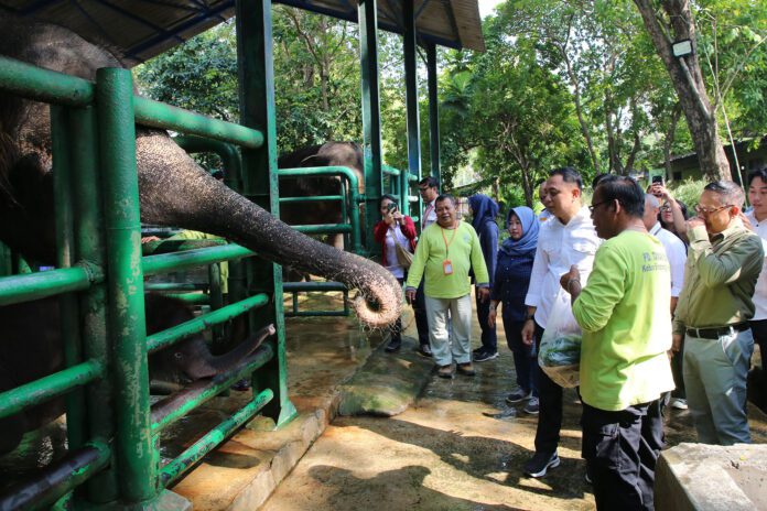 Setelah memberikan nama pada anak gajah baru KBS, Wali Kota Eri menyempatkan waktunya untuk bermain dan memberikan makanan kepada Rocky.