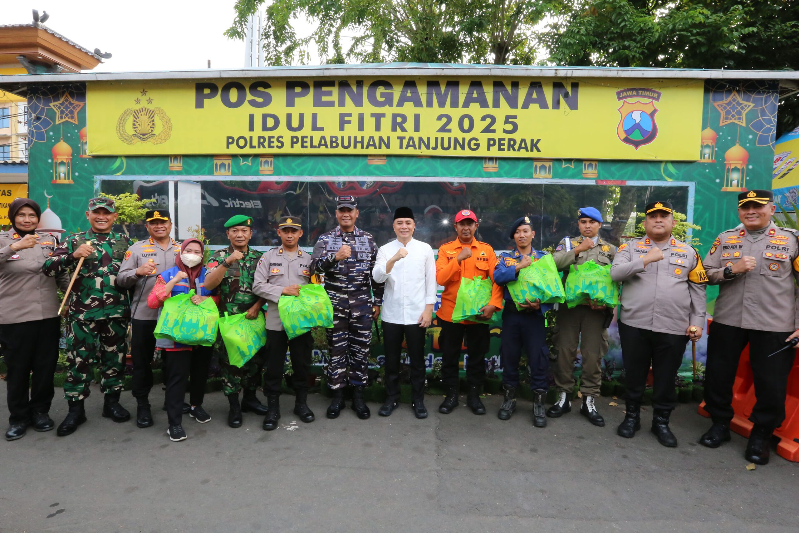 Dalam kesempatan ini, Forkopimda Surabaya juga membagikan paket sembako kepada para petugas gabungan yang bertugas di Pos PAM. Paket sembako ini sebagai bentuk apresiasi atas dedikasi mereka dalam menjaga keamanan selama Lebaran.