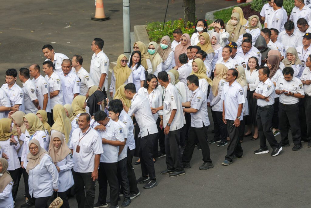 Surabaya 25 Maret 2026 | Draft Rakyat Newsroom – Pasca lebaran Idulfitri 1447 Hijriyah, Wali Kota Surabaya Eri Cahyadi bersama Wakil Wali Kota Surabaya Armuji menggelar halalbihalal di halaman Balai Kota, Rabu (25/3/2026). Kegiatan ini turut diikuti oleh pimpinan dan anggota DPRD Kota Surabaya, Sekretaris Daerah (Sekda), jajaran Kepala Perangkat Daerah (PD) hingga pejabat struktural serta karyawan di lingkungan Pemerintah Kota (Pemkot) Surabaya.