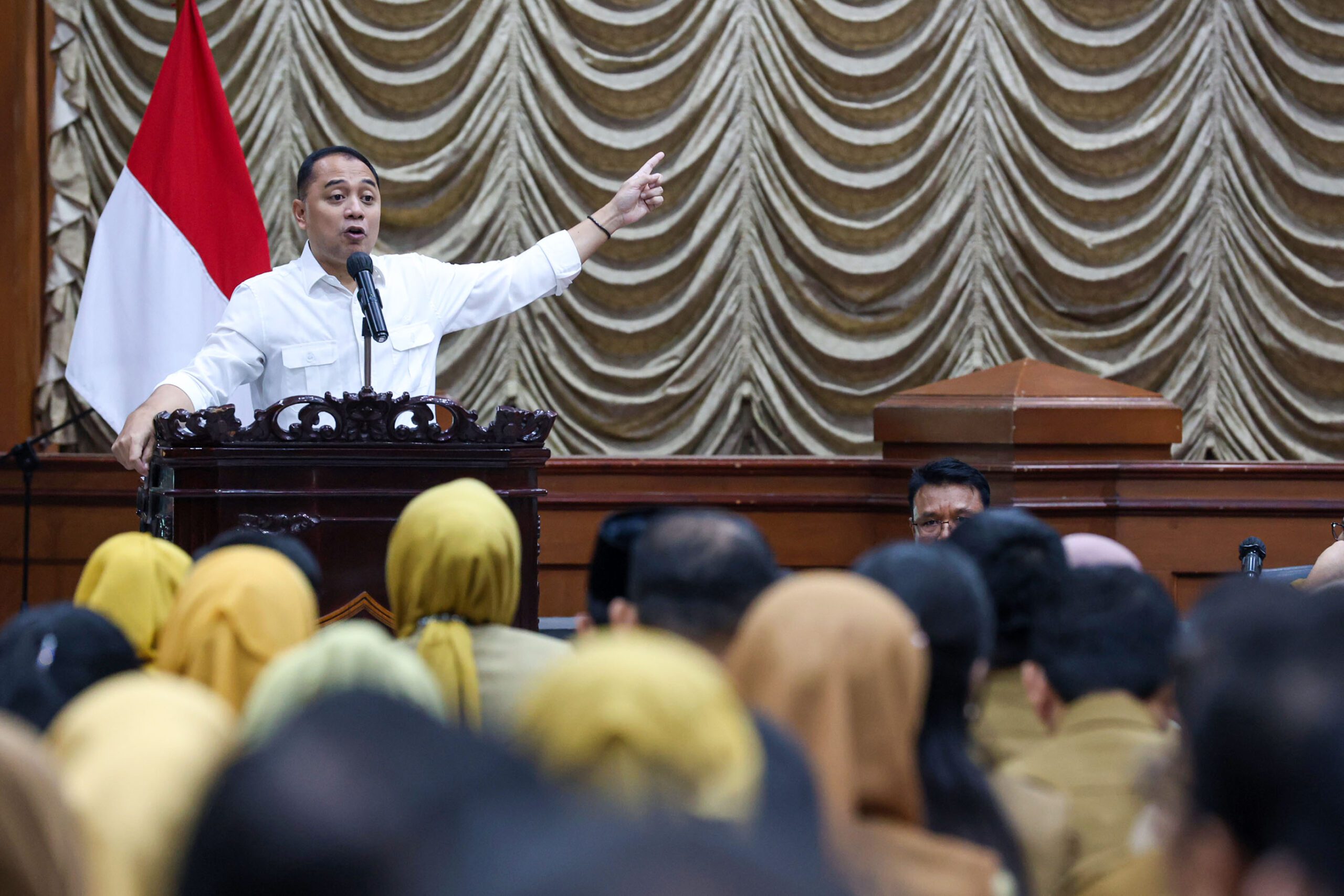 Penegasan tersebut disampaikan Wali Kota Eri Cahyadi dalam pengarahan kepada lurah, camat, dan kepala perangkat daerah (PD) di lingkup Pemerintah Kota (Pemkot) Surabaya. Acara ini digelar di Graha Sawunggaling, Selasa (9/9/2025).