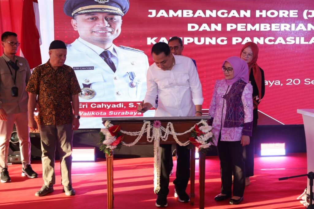 Surabaya 21 September 2024 | Draft Rakyat Newsroom-Wali Kota Surabaya Eri Cahyadi meresmikan Kolam Renang Jambangan Hore (Jambore) Playland, di Jalan Ketintang Madya VII Surabaya, Jumat (20/9/2024). Jambore Playland ini merupakan salah satu wujud nyata, komitmen Pemerintah Kota (Pemkot) Surabaya dalam memberikan fasilitas rekreasi yang aman, menyenangkan, dan terjangkau bagi seluruh masyarakat.