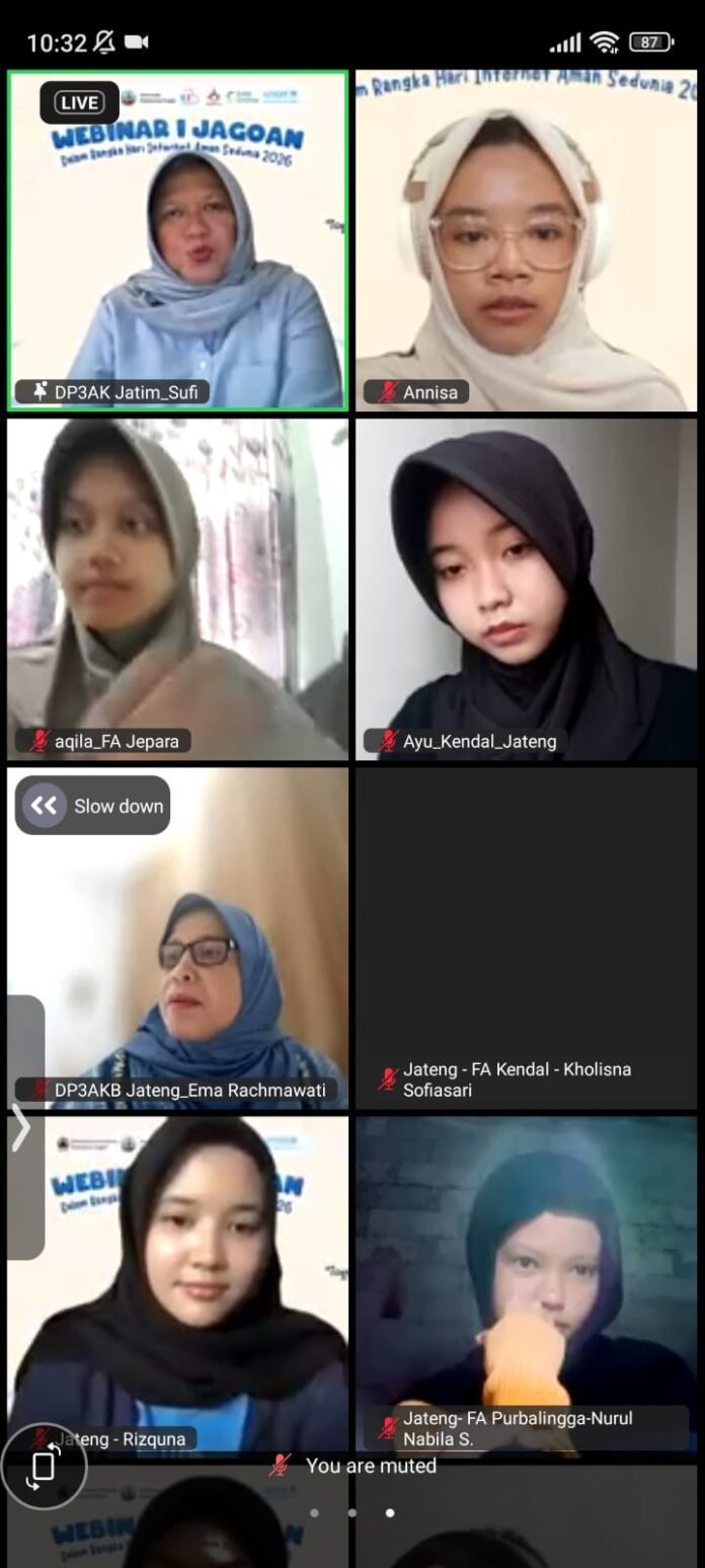 Surabaya 16 Februari 2026 | Draft Rakyat Newsroom – Webinar dalam rangka peringatan Hari Internet Aman Sedunia yang melibatkan anak-anak dari Jawa Timur dan Jawa Tengah berlangsung meriah pada Minggu (15/2/2026). Kegiatan ini diikuti 142 peserta dari berbagai daerah, antara lain Tuban, Surabaya, Bojonegoro, serta sejumlah wilayah di Jawa Tengah, yang aktif berdiskusi dan berinteraksi sepanjang acara.